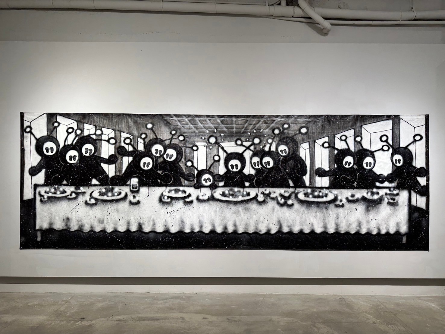本展「ALIEN NEURON」においてもエイリアンちゃんは中心的な役割を果たし、平面のみならず立体的な展示構成となっております。新作の展示・販売はもちろん、本展のために作られた限定グッズも販売します。「可愛い」と「破壊」が入り乱れた、SIMONによる新たな展開を是非ご高覧ください。