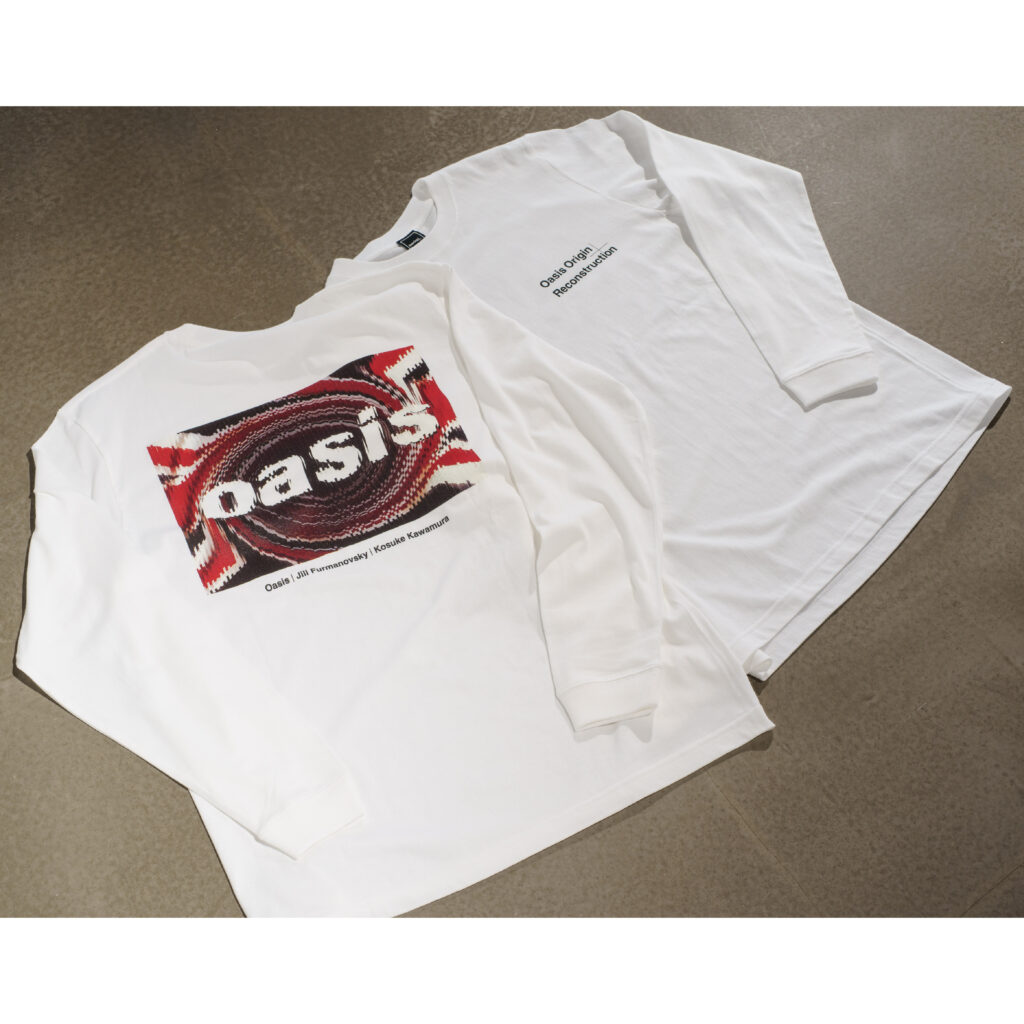 ジルによる写真作品及び、河村康輔によるコラージュ作品・シルクスクリーン作品の販売に加え、「Oasis Origin + Reconstruction」限定のOasis × Jill Furmanovsky × 河村康輔 オリジナルグッズにもご注目ください。