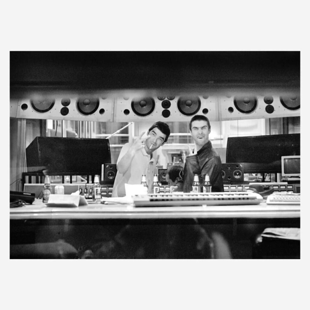 ジル:『Be Here Now』を録り終えるくらいの、エア・スタジオでの写真ですね。オアシスにとって非常に困難な制作で、その時期を超えたことを祝う一枚でした。兄弟のユーモアがよくあらわれていますね。この写真はすごくお気に入りです。